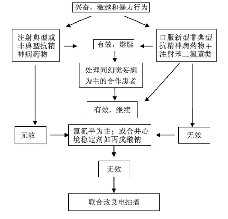 以兴奋、激越和暴力行为为主要临床相的精神分裂症患者的处理流程研究显示,当前证据不支持氯氮平联用拉莫三嗪增效治疗难治性精神分裂症。相比之下,氯氮平联用丙戊酸盐可能是难治性精神分裂症相对安全有效的增效治疗手段。
