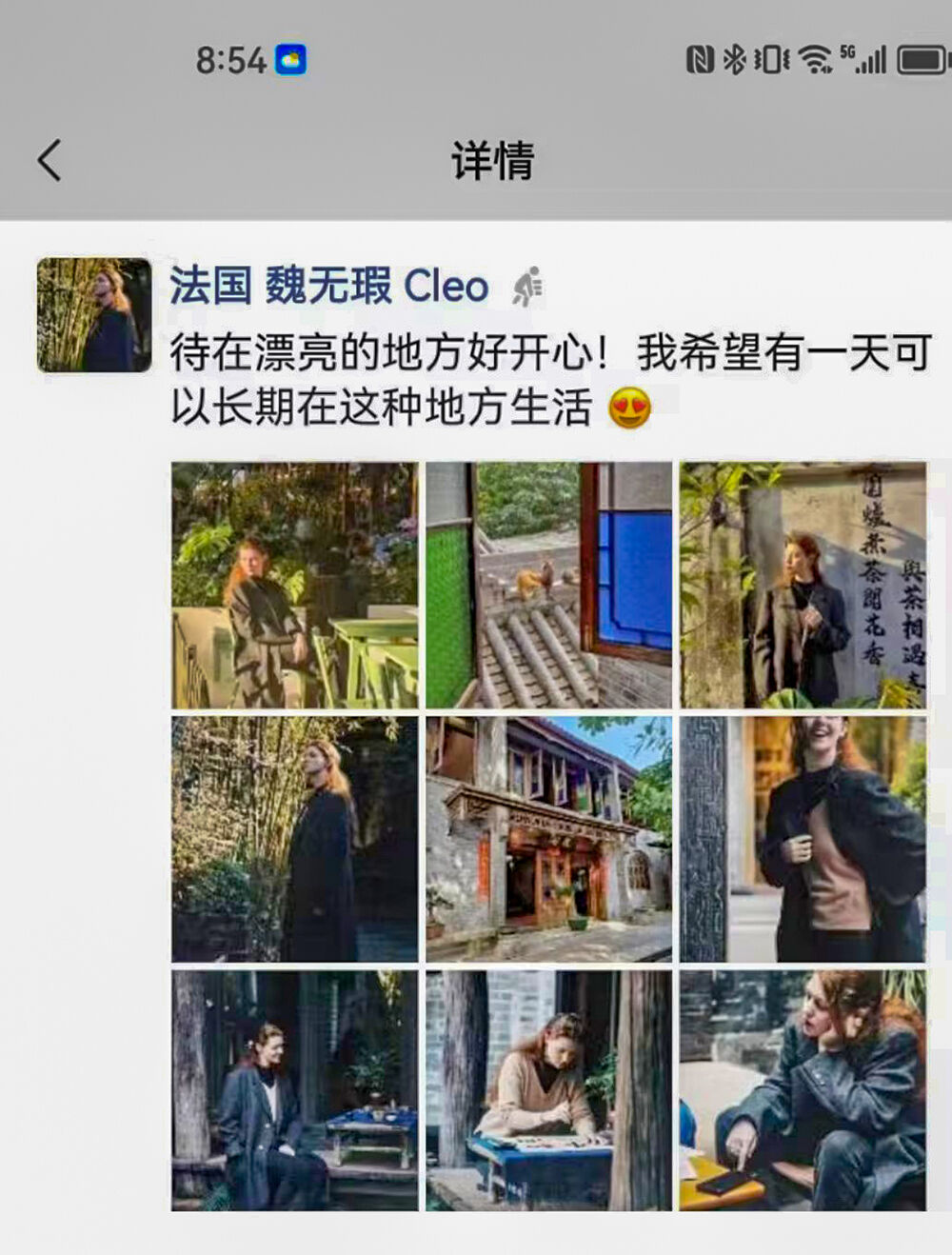▼ 图注:魏无瑕Cleo在朋友圈盛誉北山