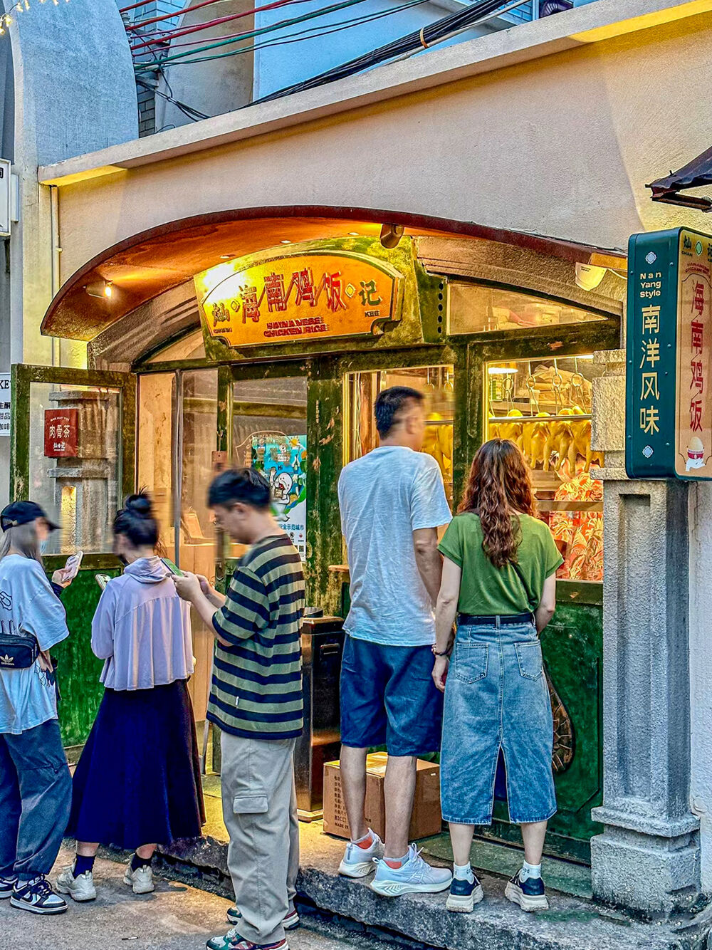 醒目的黄绿门牌、做旧的门窗、挂满鸡的明档、穿花衬衫戴头巾的斩料师傅,旧时的大理石木桌椅、怀旧台灯、热水壶……无不凸显着这里的东南亚风情和华人心系祖国的细腻情感。