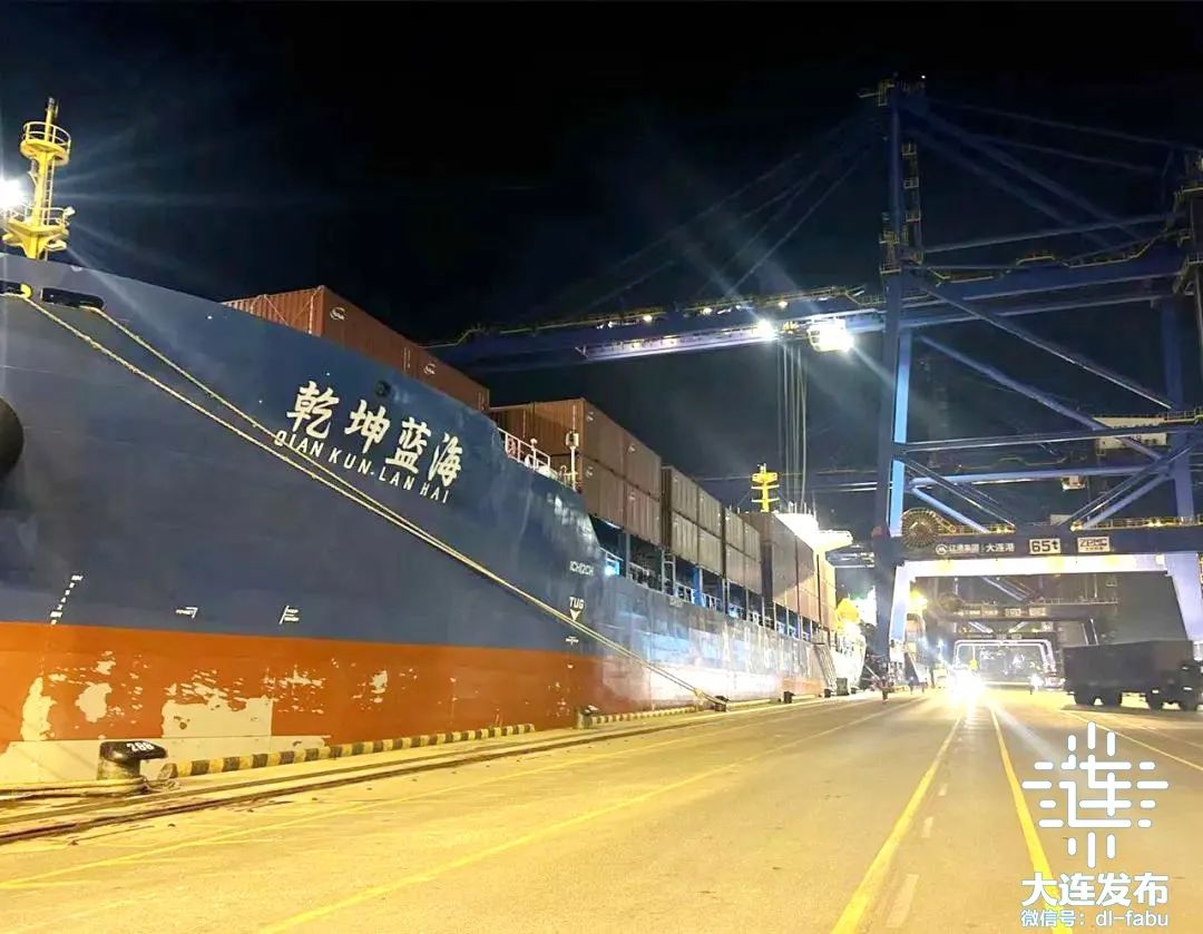 近日,中远海运内贸线“乾坤蓝海”轮高效完成首航作业,顺利驶离大连集装箱码头。此次作业中,单机作业效率达125自然箱/小时,再度刷新大连口岸单机作业效率纪录。