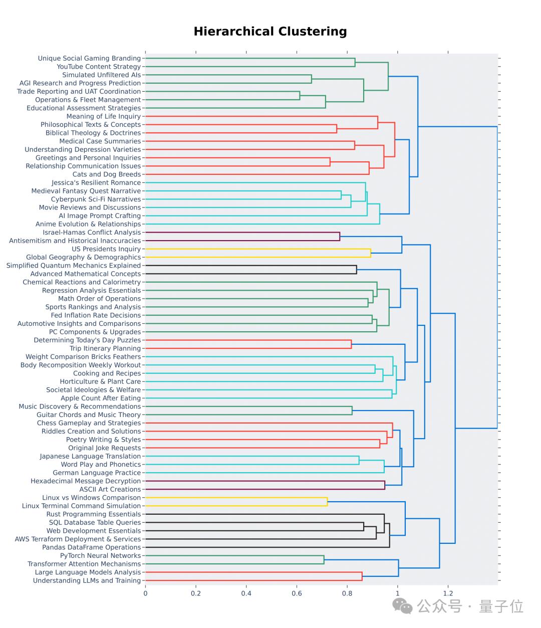 从层次结构可视化的前64个聚类中也可以看出,大模型竞技场用户的提问质量和多样性确实是高。