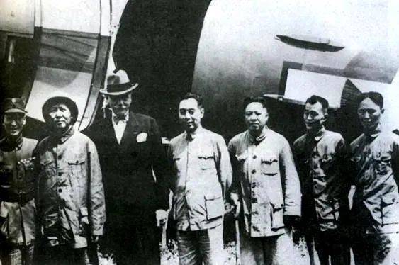 胡乔木(右二)和毛主席等人去重庆时的留影