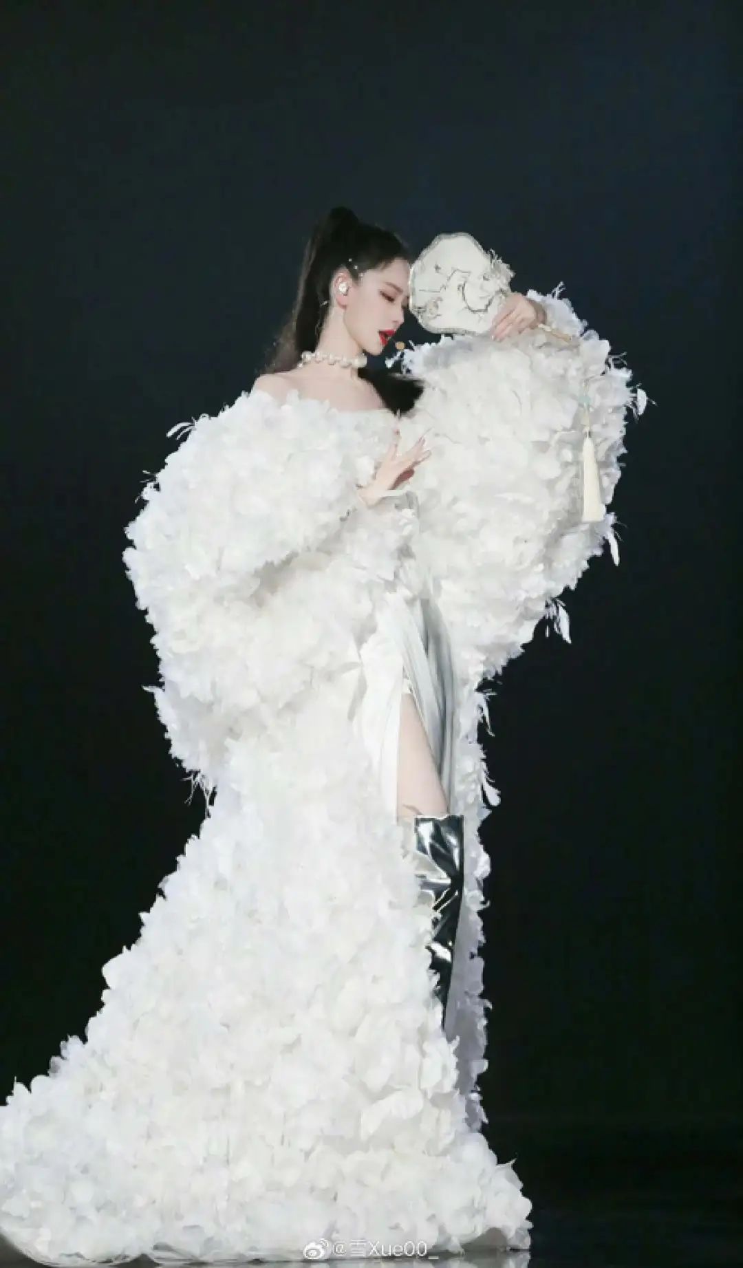 所以,你在看到戚薇的初舞台时会有一种空灵之美。在晋商时期,白色象征着尊贵,王公贵族们和有身份的人常穿白色的服饰。如果戚薇以穿越者出现在这里,她一定会是最独特的存在,当然不仅仅是因为身份,她在音乐、美学上的成就实在太耀眼。
