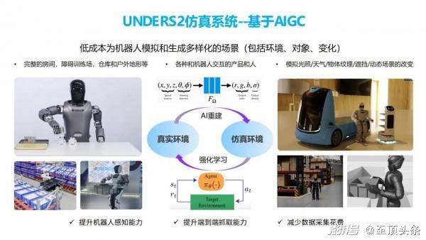 就后者而言,如今业界普遍应用的方法是Sim2Real,也就是在仿真环境下生成数据,大模型的本质是生成式AI,生成人形机器人的训练数据,自然也成了其能力之一。为此,优必选自己搭建了人形机器人智能仿真系统UNDERS2,通过这一系统,优必选可以低成本地为人形机器人模拟和生成多样化的场景。