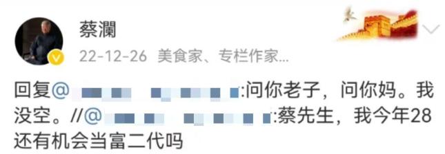 有人28岁还妄想当富二代,蔡澜直接回怼,你应该问你老子,喊你老母,我没空。