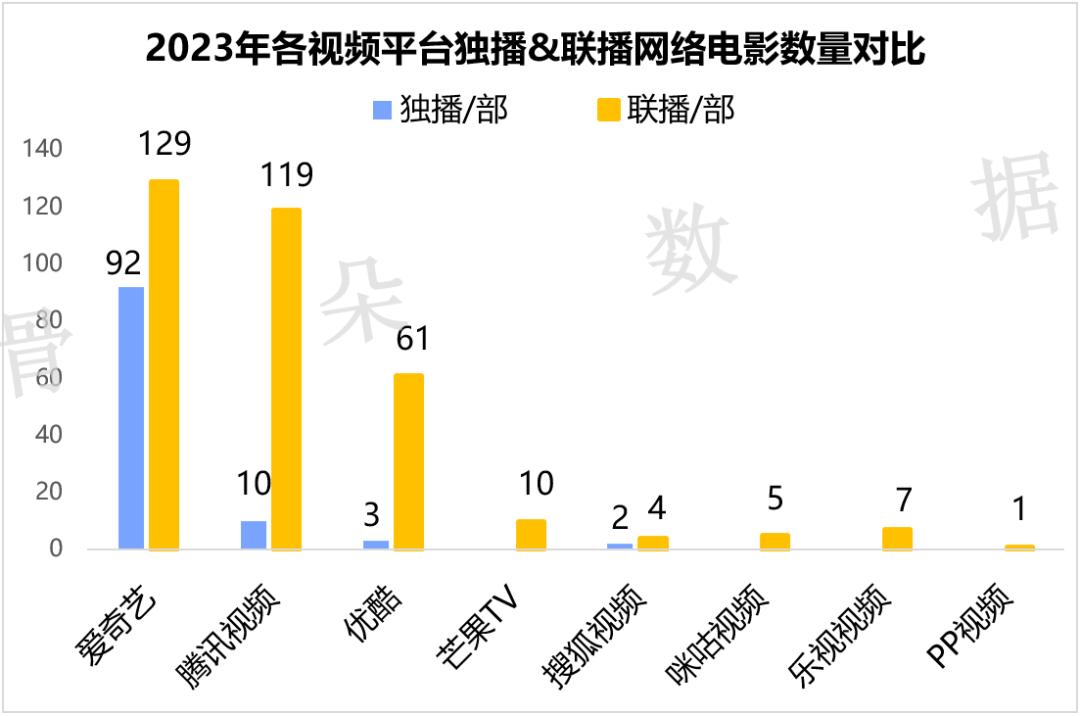 2023年,网络电影多平台联播的趋势更加明显。相比过去两年,独播网影持续减少(2021年独播网影503部,2022年独播网影236部)。