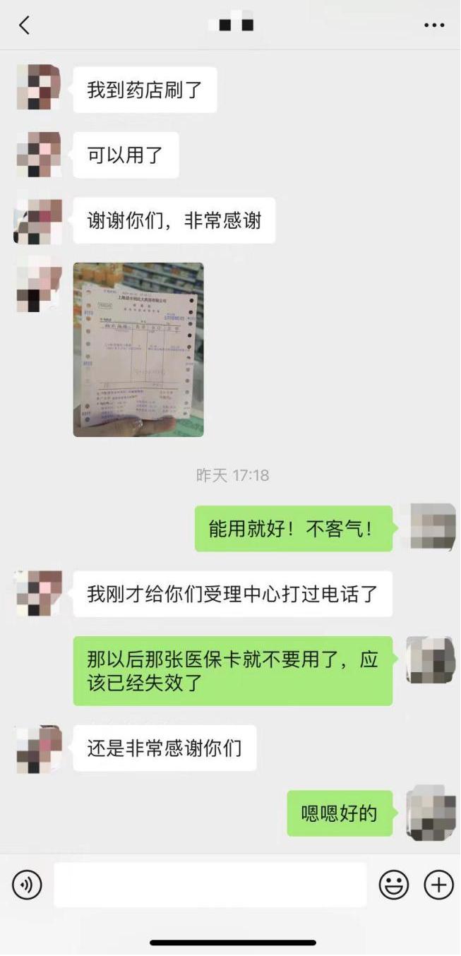 找到问题后,石化街道社区事务受理服务中心立即与相关部门取得联系,对刘婷的信息进行了修改。仅仅一天后,刘婷的社保卡信息状态便恢复了正常。她立刻前往药店使用社保卡购买了所需的药品,并向中心的工作人员发来了感谢微信。