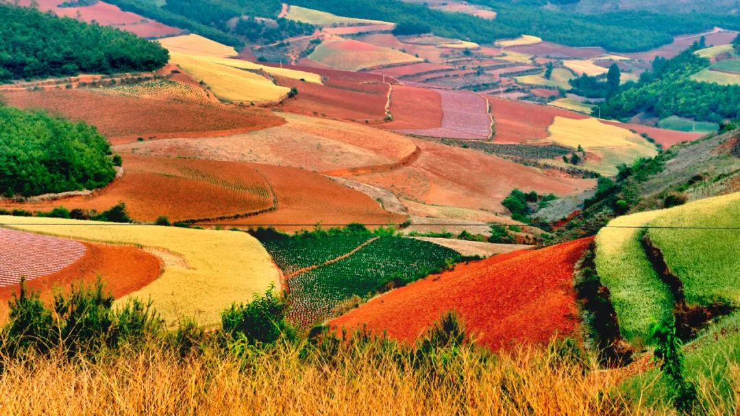 位于云南省昆明市东川区新田乡101省道,东川红土地是洒落在人间的调色盘,一大块一大块红绿相间的田地不断映入眼帘,看起来相当震撼人心!