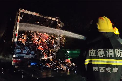 一辆满载啤酒的货车突发起火