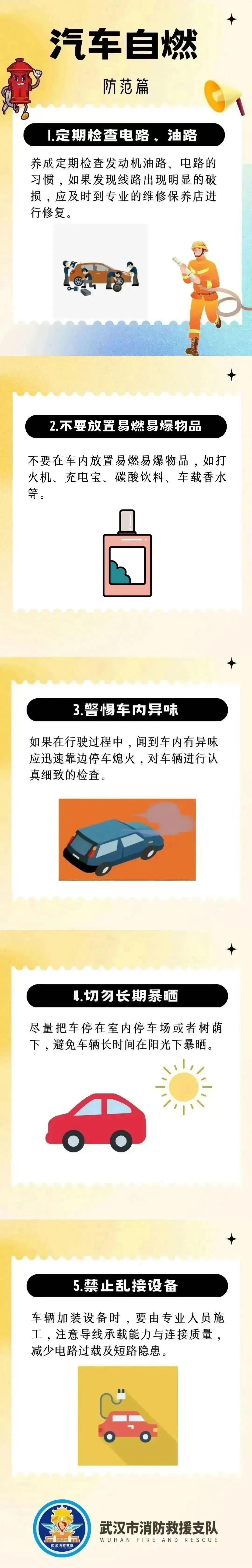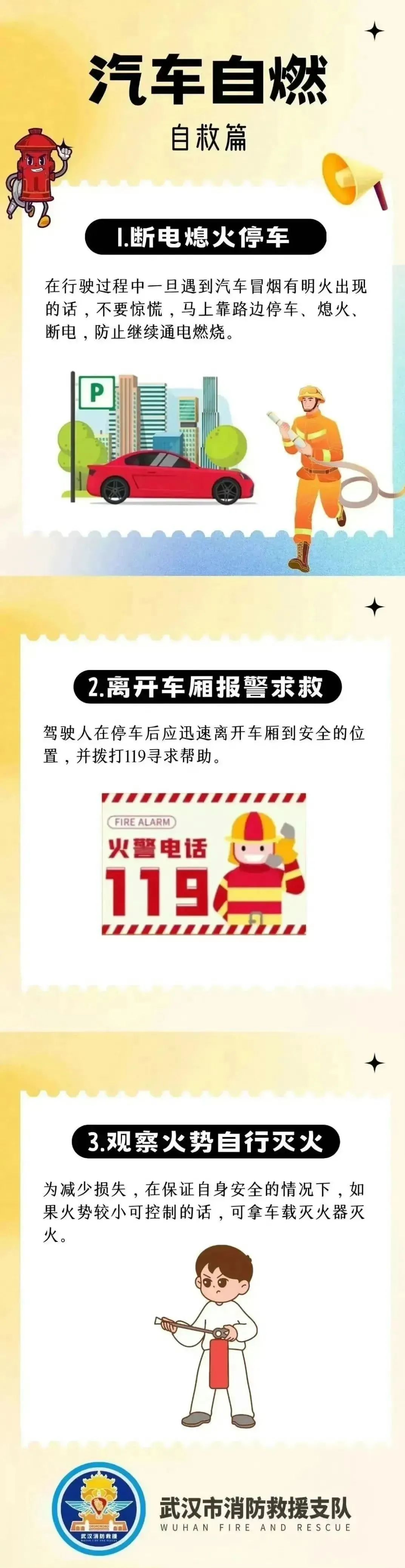 遇到车辆自燃应该如何自救呢?以下这些消防安全知识