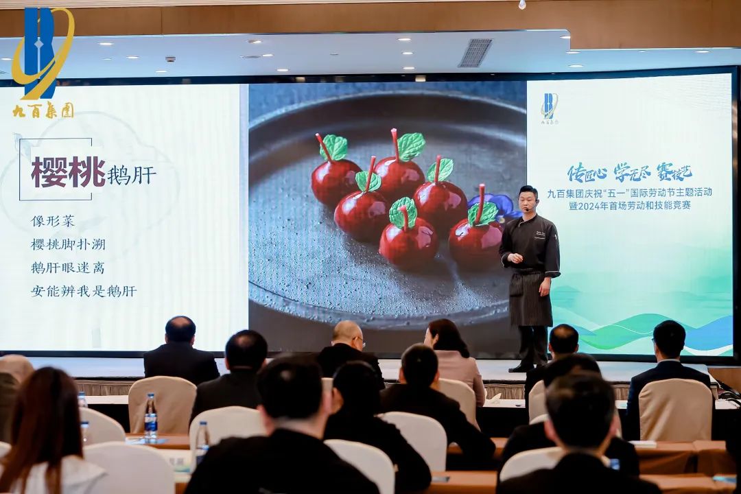 林晓珏表示,九百集团不断培育高素质技能人才队伍、营造良好的育才气氛、巩固企业的文化优势,为壮大现代化商业集团提供了坚实支撑,新颖的活动形式激发起干部职工的创新创造热情,互融共进的交流方式传递着团结协作、担当作为的企业氛围。九百集团要勇当示范引领,积极投身建设南京西路“千亿商圈”的生动实践;要勇当先进楷模,积极营造劳动光荣、创造伟大的良好企业氛围;要勇当创新先锋,积极塑造企业发展新动能,在传承中保持开放心态,持续提升人才素质,为企业可持续发展提供更加有力的保障。九百集团2024年首场“谷雨至·万物生”劳动与技能竞赛现场,百乐门精品酒店餐饮厨房创新工作室和美丽园大酒店工匠创新工作室带来了师徒带教厨艺交流友谊赛。百乐门和美丽园两个酒店的资深厨师结合时令节气,充分融合中西菜品文化,为大家带来了4道秀色可餐的创新菜。