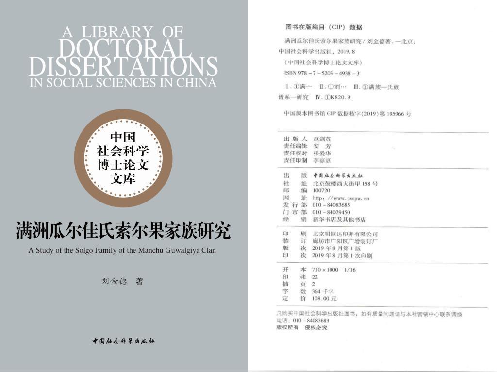 《满洲瓜尔佳氏索尔果家族研究》入选2018年度《中国社会科学博士论文文库》,由中国社会科学出版社资助出版,出版后《历史档案》《满族研究》等刊物发表书讯书评予以推介。全书除绪论、参考文献、索引、后记外,由五章构成,近40万字。该书以满洲瓜尔佳氏索尔果家族为研究对象,立足于《清实录》等基础史料,充分运用满汉文档案、各类族谱,对索尔果家族兴起的社会历史背景,家族各支系的发展脉络、族人事迹、家族佐领、旗分和爵秩,以及婚姻关系和家族历史地位等问题予以分析考证,附录部分作者罗列了索尔果家族佐领、婚姻和封爵汇总表,以及家族谱系图。该书在充分尊重学术界研究成果的基础上,对族人事迹的考证极为精详,弥补了以往研究中的不足;对家族佐领、旗分变化的探讨是一个崭新的视角;对家族婚姻关系的梳理展现了清代满洲贵族间婚姻往来的政治意义。获奖者简介: