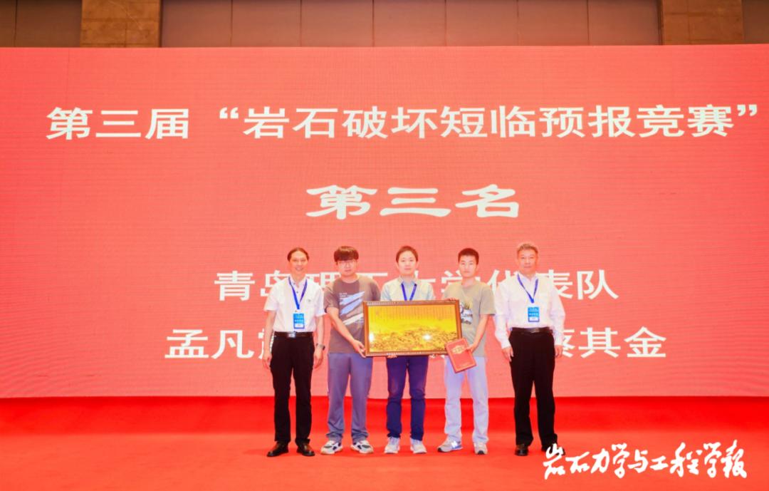 近日,在海口举行的2024年“陈宗基讲座”开幕式上,中国科学院院士赵阳升教授揭晓了第三届“岩石破坏短临预报竞赛”结果,我校理学院力学系孟凡震教授、2022级力学专业硕士研究生李致远、蔡其金共同组成的青岛理工大学代表队荣获比赛第三名。