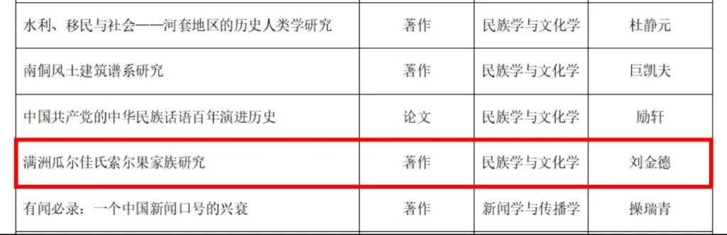 近日,教育部公布了第九届高等学校科学研究优秀成果奖(人文社会科学)奖励成果名单,经组织专家通讯评审和会议评审,奖励委员会审议通过,共评选产生拟奖励成果1491项。其中:著作论文奖1195 项,咨询服务报告奖 76 项,普及读物奖 20 项,青年成果奖200项。我校马克思主义学院刘金德副教授的专著《满洲瓜尔佳氏索尔果家族研究》,荣获“民族学与文化学”学科类别的青年成果奖,这是我校获得的第二个高等学校科学研究优秀成果奖(人文社会科学)、首个青年成果奖。