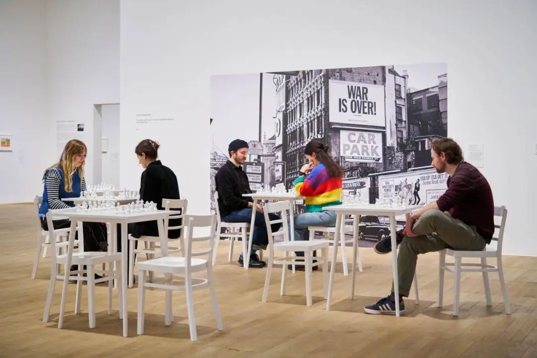 另外,我们想选一些能突出洋子集体主义那一面的作品,尤其是她后期提倡参与的那些创作。比如,她在伦敦和利物浦举办的“思想的乐声”系列表演里的关键作品之一:“上色”(Add Color), 在2016年发展成了此次展出的“上色(难民船)Add Colour (Refugee Boat)”。