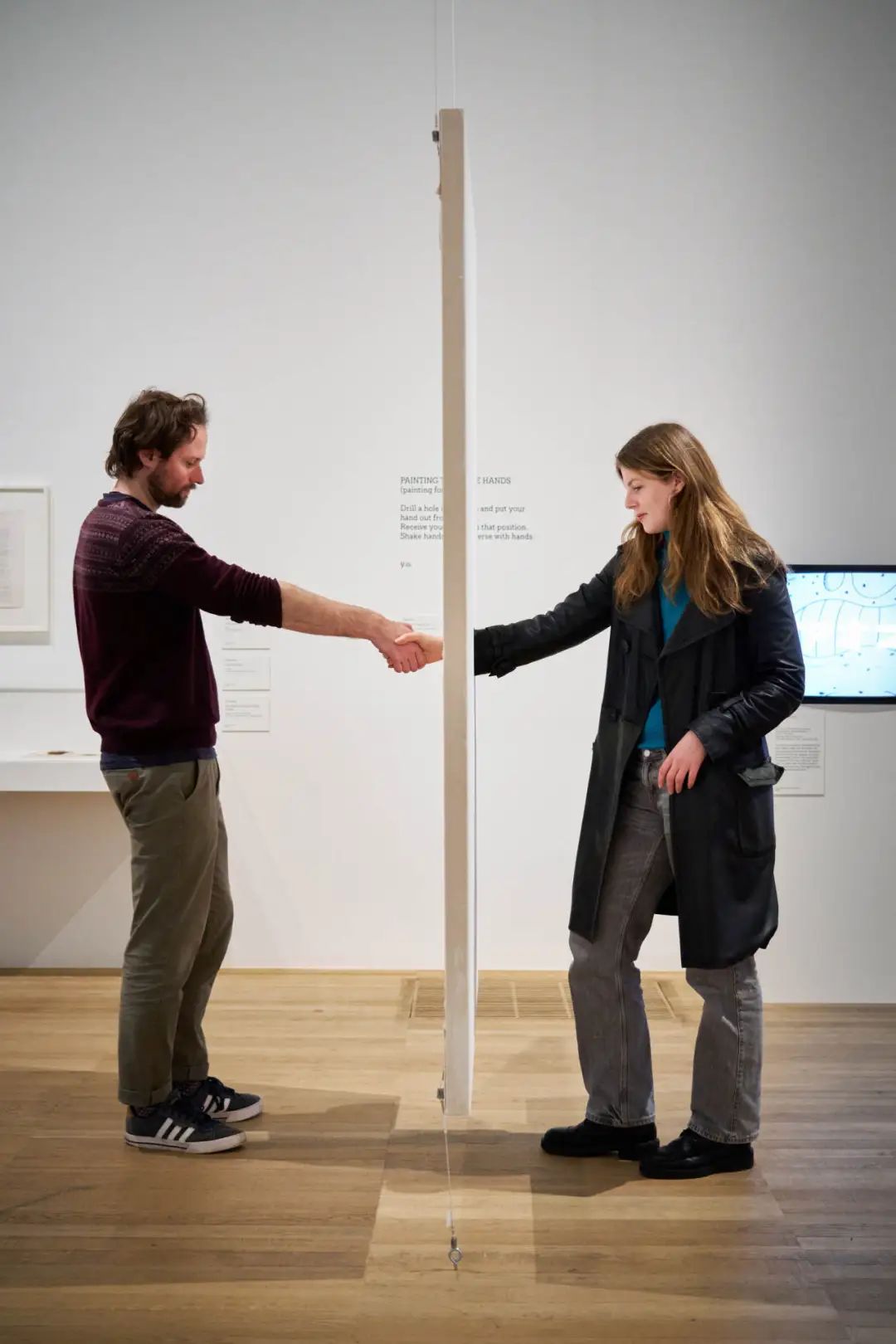 Andrew de Brún:作为策展人,想办法让艺术把人们聚集在一起,不仅是长远意义上来说还是字面意义上来说都是,这让人特别兴奋。人们从四面八方来到这里,在展览语境和美术馆空间中一起创造出一件作品,这种对好奇心的探索方式多么美妙。毕竟我们很少有机会把一幅画放在地板上,邀请人们在上面行走,或者邀请参观者用锤子在画上钉钉子。