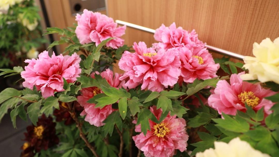 为了让旅客在列车上就能提前欣赏牡丹之美,郑州客运段乘务人员挑选经典品种的盆栽牡丹,在车厢一角精心布置了列车牡丹花会,营造出浓浓的赏花氛围。
