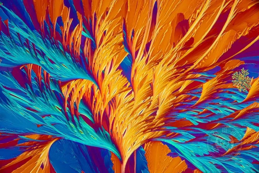 ▲ 《胼胝去除剂》© Robert Berdan在玻璃载玻片上涂抹胼胝去除剂,并用带有延缓滤光片的偏光显微镜观察。