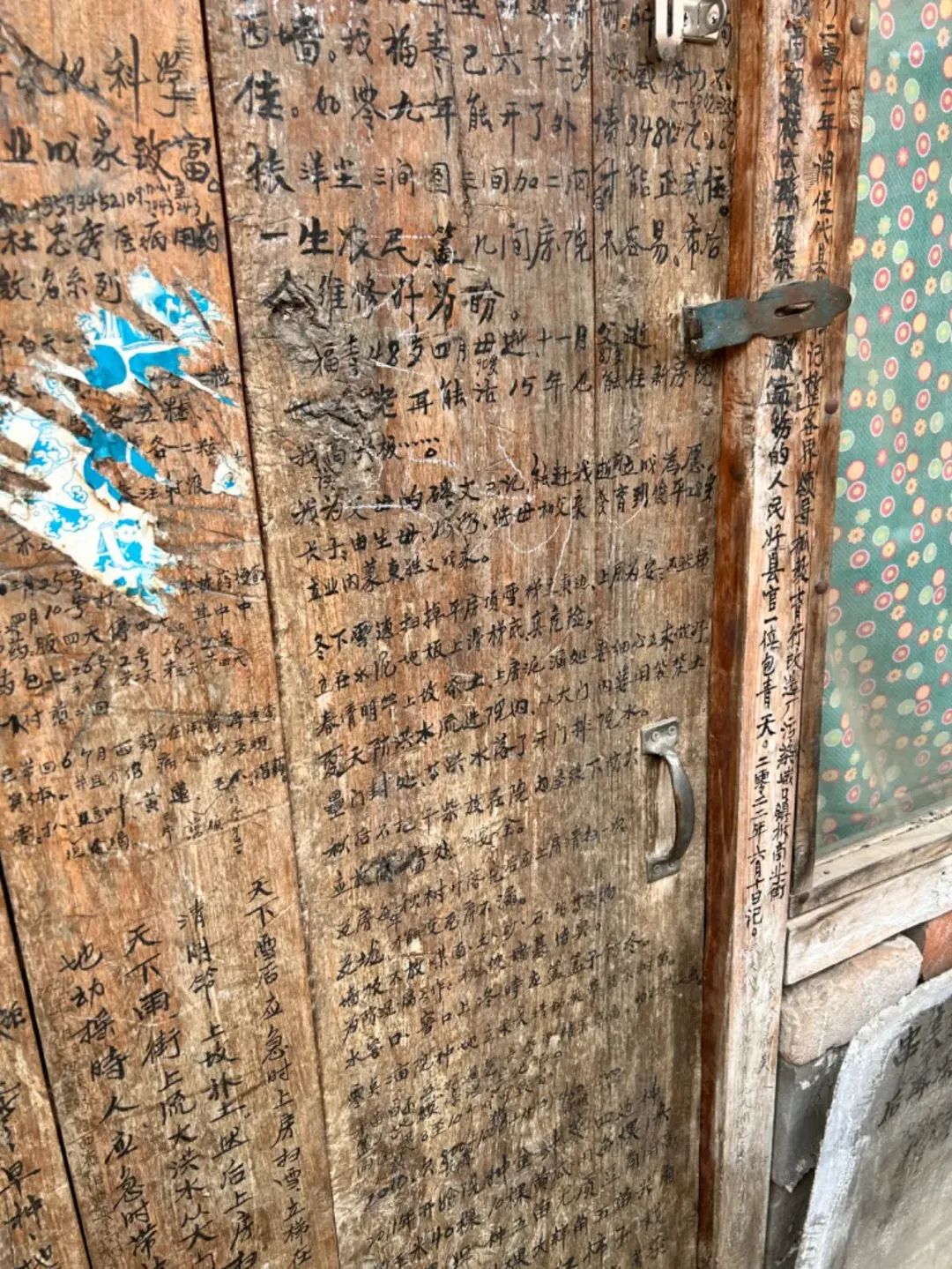 这些文字更像是一个留守老人的喃喃呓语。在漫长的岁月里,它爬上了正门的照壁,柴房的梁上,还有顶门的木叉。