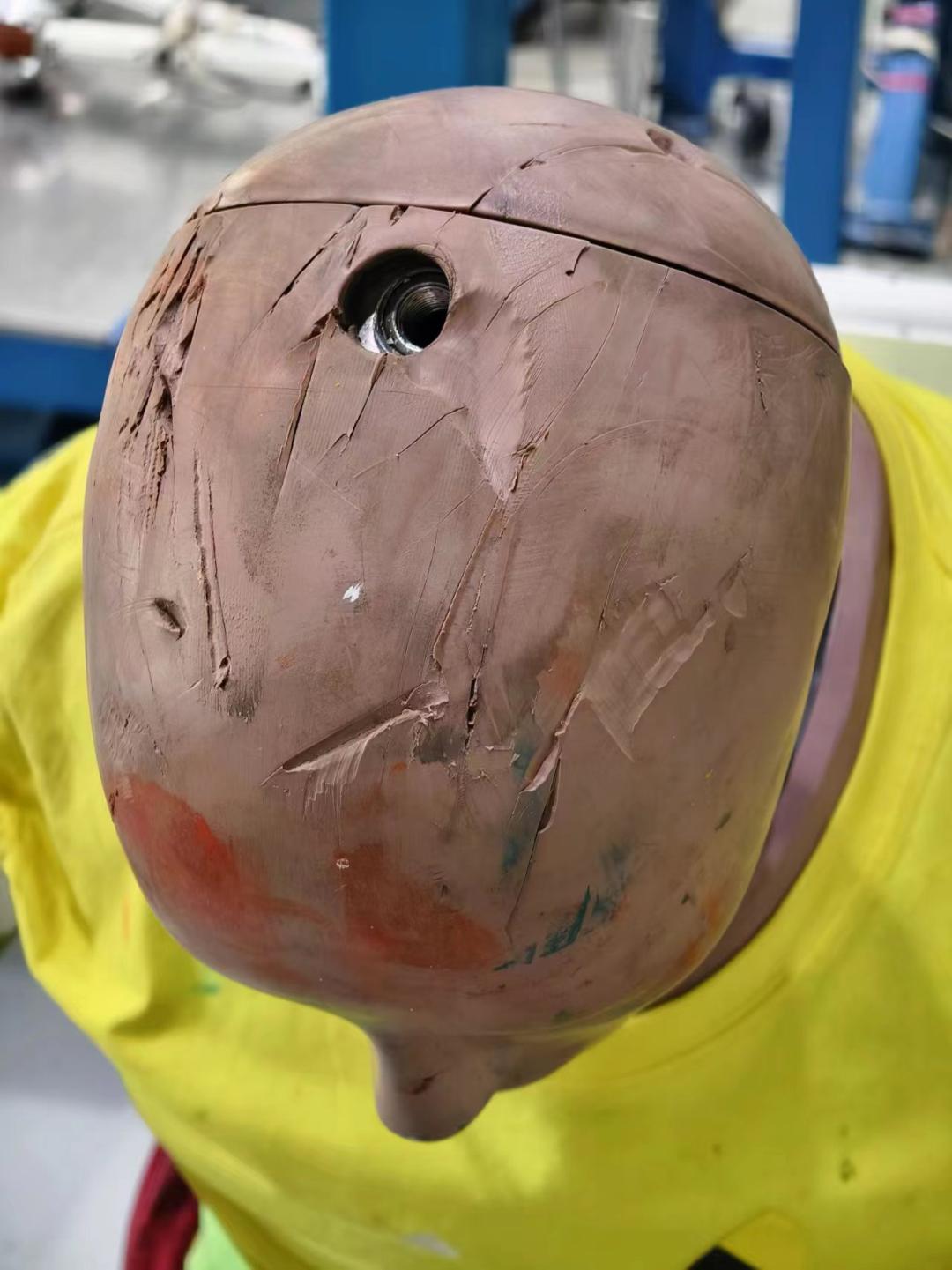 假人“伤痕累累”的身体部件假人当然是可以重复利用的,寿命我不太好说,只要不坏就可以一直用,只是零部件在不断更换,有的部件三五个月就坏了,但有些内部的钢性结构,就这些铁疙瘩,可能三五年都坏不了。