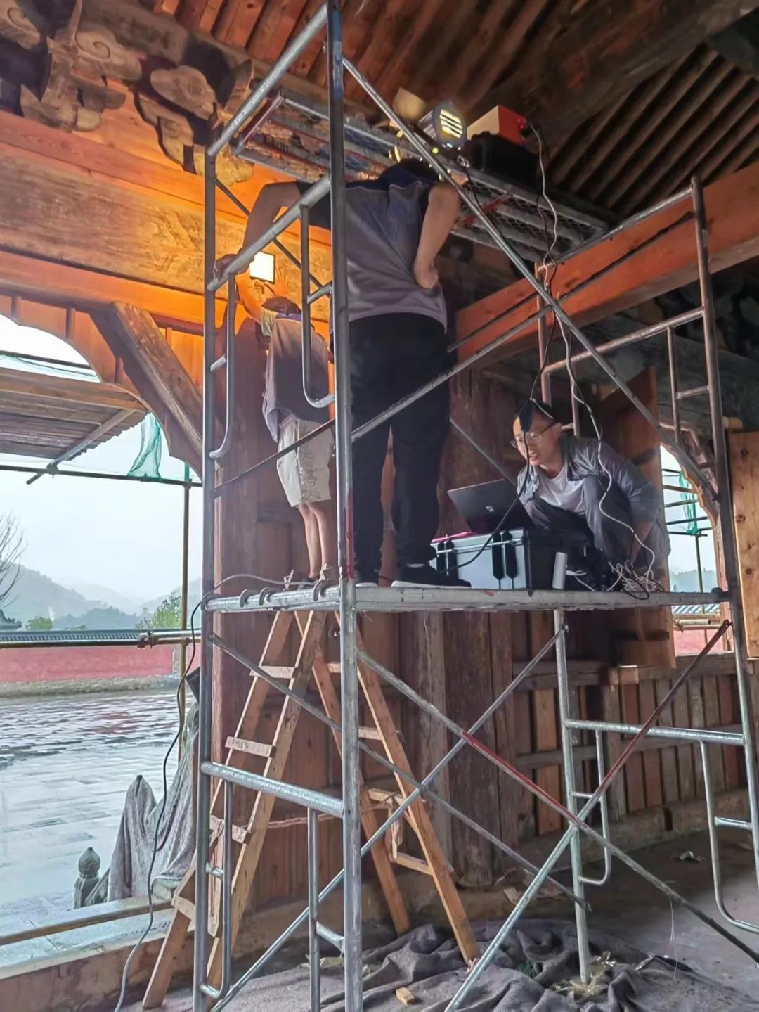 ▲武大文化遗产数字化团队在武当山进行高光谱数据采集