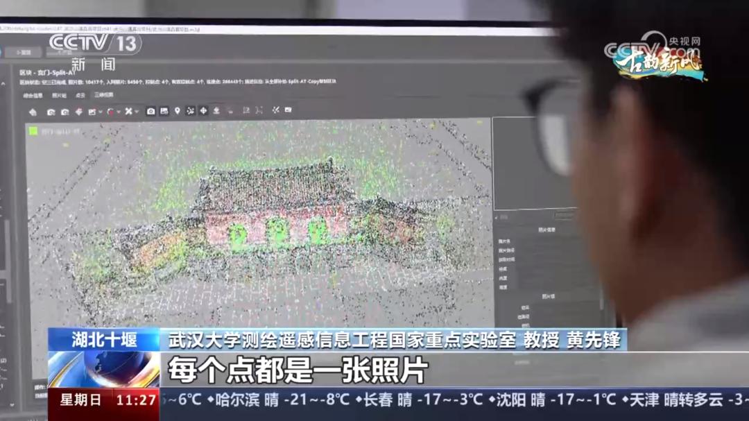 ▲“云上的宫殿”亮相央视新闻实验室基于自主研发的多传感器数据自动三维重建技术,结合人工智能技术、新型测量设备等技术和装备,建立了武当山紫霄宫及紫霄殿单体建筑的高精三维数字模型,成果模型精度可以支持建筑本体的1:1复刻。该模型的建立推动了武当山文化遗产数字保护工作的进一步发展,不仅有利于对武当山文化遗产本体的保护,也为通过数字化形式传播、弘扬武当山文化提供了可能性,是武汉大学在大遗址文旅活化领域取得的重要突破。