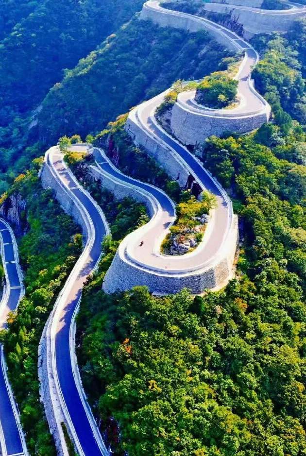 仰天山九龙盘,潍坊青州天路精华段在仰天山景区内,仰天山的山势雄奇,峰峦峭壁,漫山尽是苍劲松柏,还有有惊无险且风光绝美的盘山路,“一窍仰穿,天光下射”是对它最精准的概述。