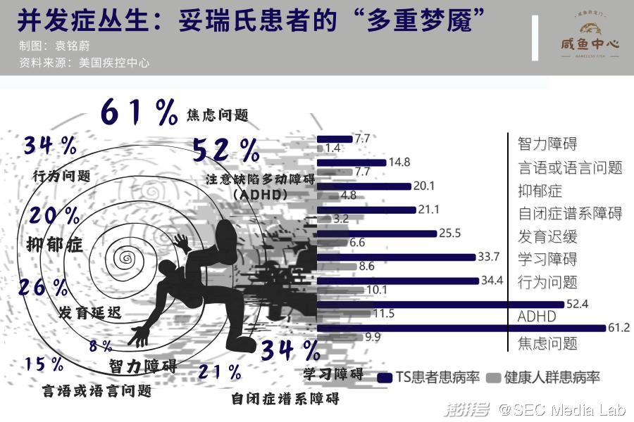 美国疾控中心所公布的数据显示,在被诊断患有妥瑞氏症的儿童中,有83%的孩子还被诊断患有至少一种额外的心理、行为或发育障碍,且发病率远远高于非妥瑞氏症患者。