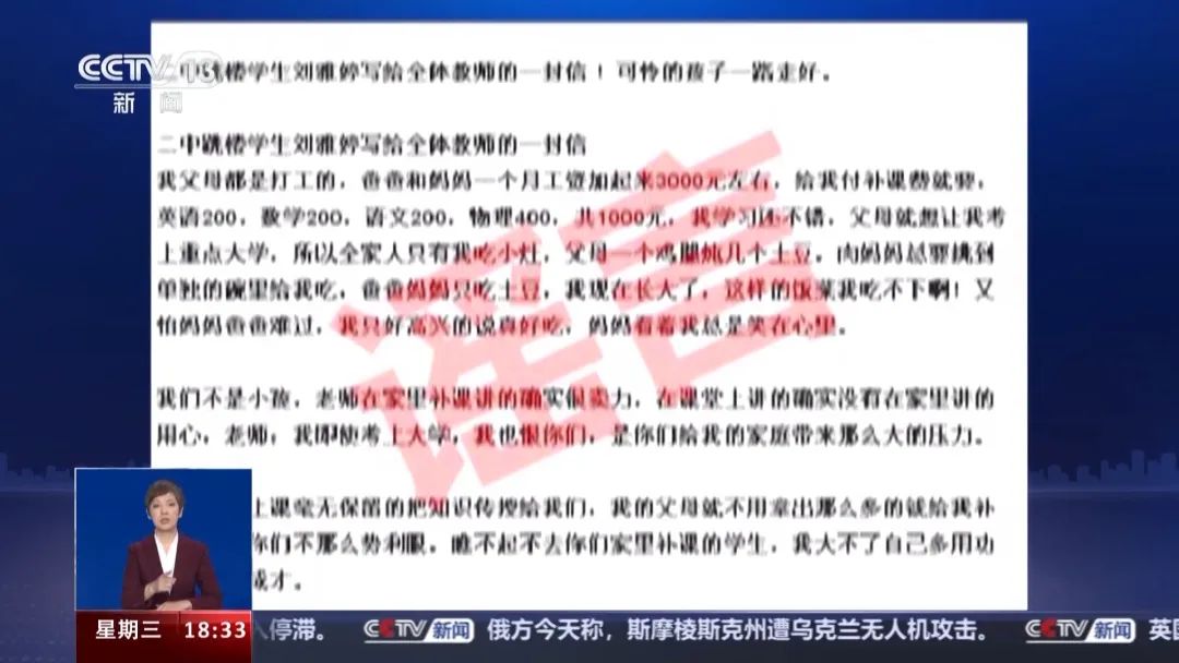 近日(3月29日),四川南充蓬安二中相关负责人向当地警方报案,称有平台自媒体发布短视频,标题为“四川南充蓬安第二中学跳楼学生刘雅婷写给全体教师的一封信,可怜的孩子一路走好”。该视频配文“全家人只有我吃小灶,父母一个鸡腿炖几个土豆,肉妈妈总要挑到单独的碗里给我吃”等煽情语句,引发网友对该县教育部门和学校强烈抨击。事实真相到底是什么呢?