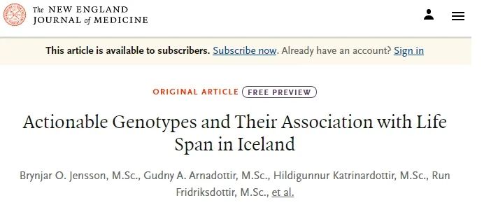去年底,新英格兰杂志(NEJM)发表的一项研究显示,冰岛人群中的“短命基因”携带者占比高达4%,也就说每25个冰岛人中就有1个人携带“短命基因”,其寿命注定比别人短。