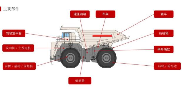 举升缸——相当于人的手在矿卡车架两侧各一个