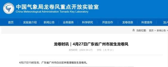 广州市白云区气象台27日16时28分发布龙卷警报:目前偏西方向有强雷雨云团移近,预计未来1-2小时白云区南部镇街可能有龙卷。广州市增城区气象台27日15时23分发布龙卷警报:预计未来1小时增城区中南部可能有龙卷,最大阵风11-12级。