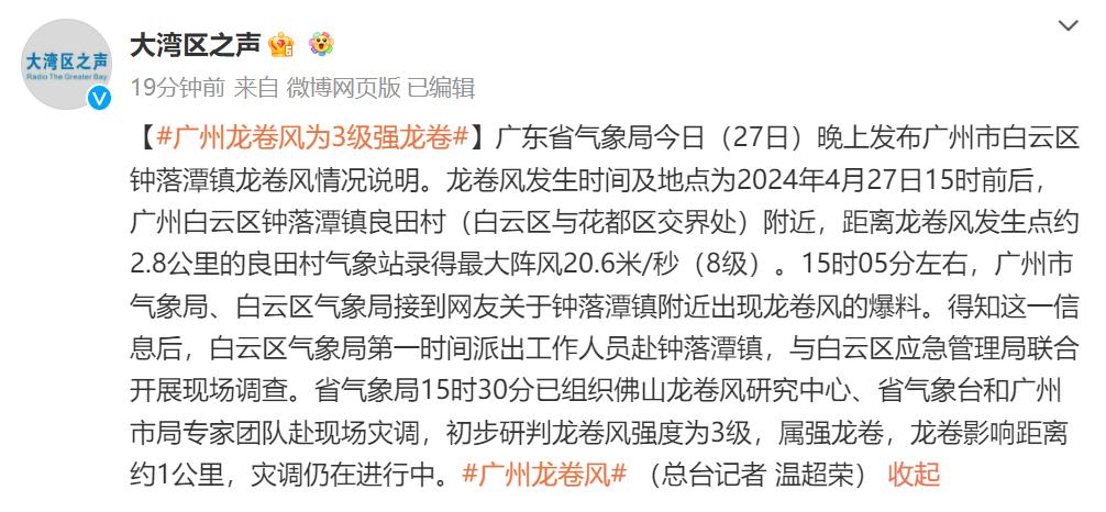 原标题:《广州突发龙卷风,“天空数次闪出巨大火光”!多区发布警报:尽快撤离!》
