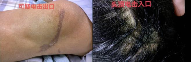 头发也烧卷了,是明显的雷击伤