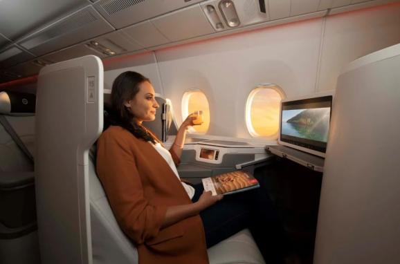 @斐济旅游局这次乘坐的是斐济航空商务舱,舱内是2-2-2式的座位布局,让乘客可以独享私人空间,而极具现代设计的座位可享“躺平”式舒适旅行,全程提供精致的斐济美食及饮品。