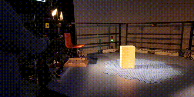 不仅可以在Holotile上行走,你还可以通过游戏操控柄控制,或者通过外力(手)在其之上实现移动。在MKBHD评测中,他将一个盒子放在全息地板上。通过前后左右移动手,纸盒也会随着同个方向移动。