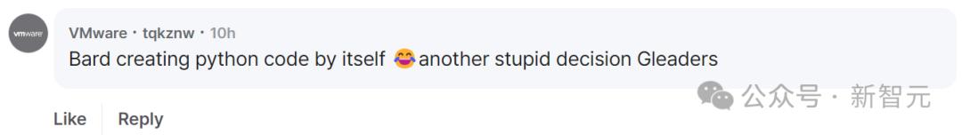 VMware的员工表示非常费解:「你们的Bard不是还要生成Python代码么,就撒手不管了?」