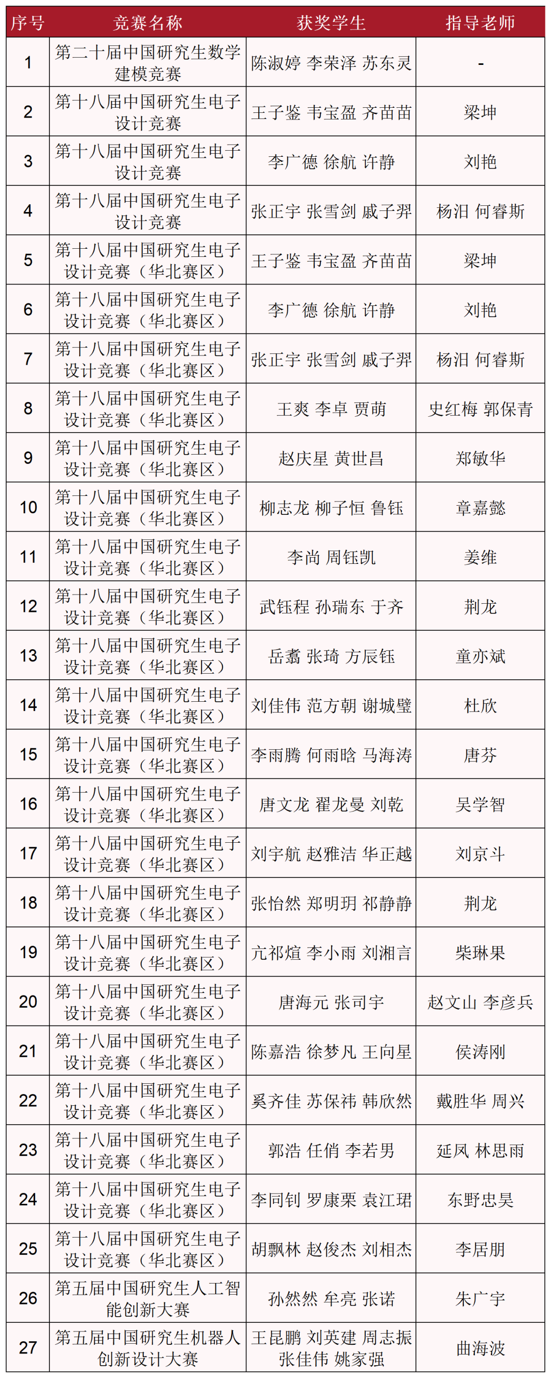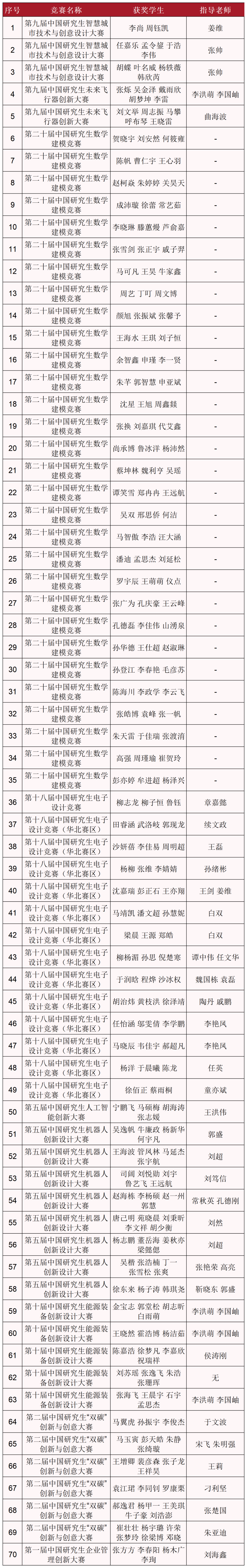 近年来,我校以学科竞赛为依托,助力创新型人才培养,组织学生积极参与中国研究生创新实践系列大赛,以赛促研究生培养质量提升、以赛促科技创新、以赛促人才培养,是教育、科技、人才一体化推进的生动实践,在促进协同育人,助力研究生教育内涵式、高质量发展方面发挥了积极作用。