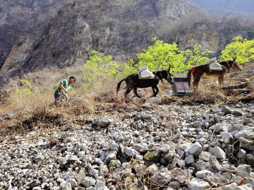 ▲村民正用骡子搬运维修材料。农民日报·中国农网记者欧阳靖雯摄游客暴增后,在狭窄的路面上,骡子和游客时常“狭路相逢”,有时是骡子让人,有时是人让骡子。