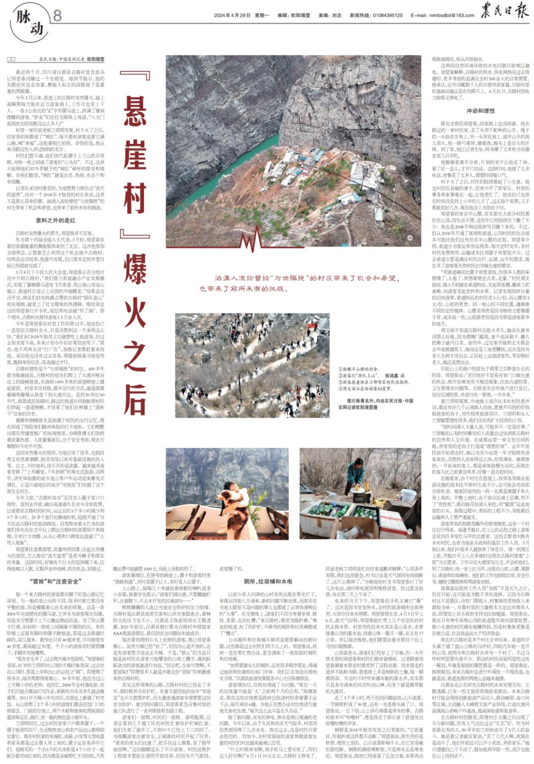 游客增加后,垃圾处理成了大问题。“现在一天的垃圾量可能是‘火’之前两个月的总和。”陈燎原说,现在这些垃圾都是政府出钱请村民牵着骡子运下去,每天来回4趟。当地正在想办法对垃圾进行就地无害化处理,“每天这么运不是长久办法。”