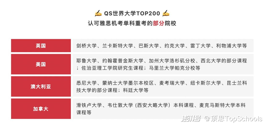 根据雅思官方最新消息,截止3月31日,全球共有超1200所院校机构认可雅思单科重考,包括英、美、加、澳、新、欧洲、亚洲等院校,且认可机构数量在逐步增加中。