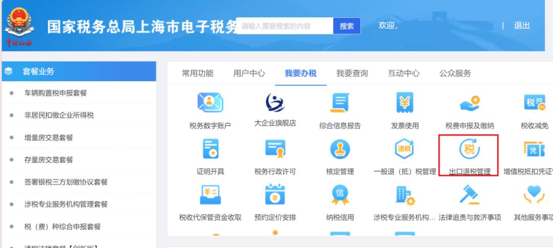 以外贸型出口企业为例1.登录上海市电子税务局,点击【我要办税】-【出口退税管理】-【出口退(免)税申报】-【出口货物劳务免退税申报】。