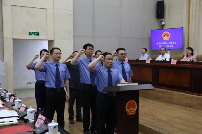 宪法宣誓仪式。市人大常委会副主任闭海东、吴立、莫莲、周灵、吴孝斌、张雪玲,秘书长蓝福武出席会议。