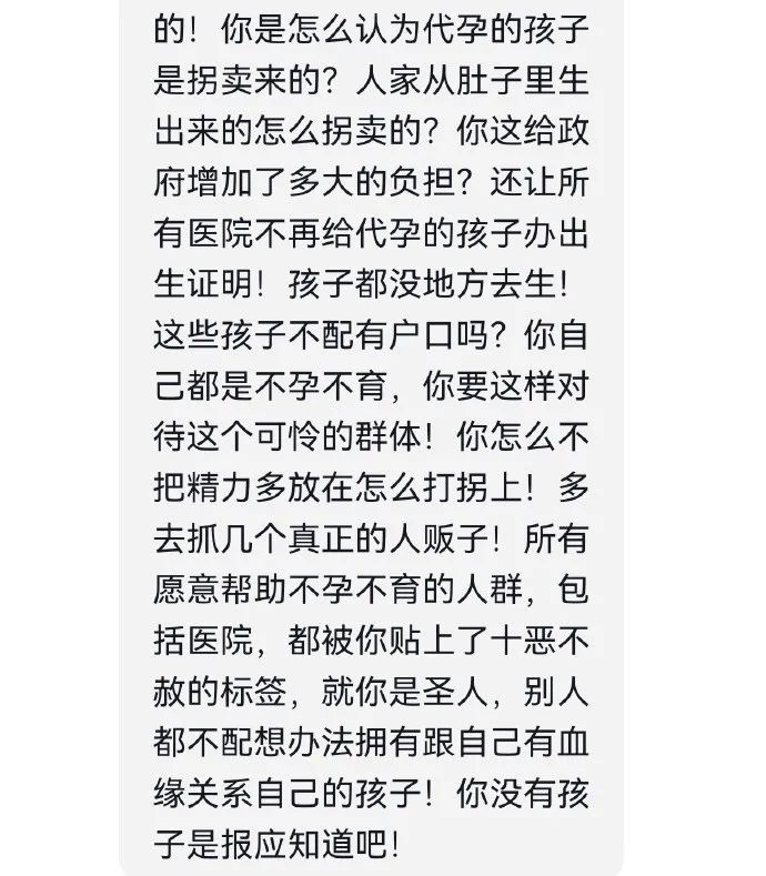 “只要孩子出生,就不能想不要就不要,更不能让孩子成为代孕中介敛财的工具。这是我们对待一个人,而非一件商品的底线。”
