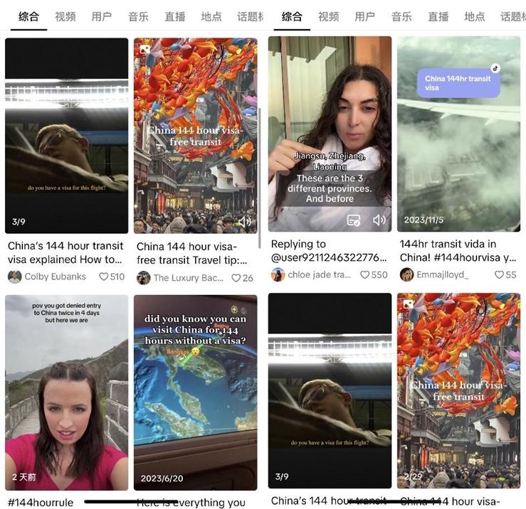对于大部分普通游客来说,这样的选项显然更具性价比。截至目前,该政策已对54个国家生效,囊括了世界上大部分国家。在TikTok和Youtube上,也开始有大量博主以“144小时过境免签”为主题拍摄自己的中国游记Vlog。