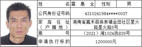 曝光台 | 嘉禾法院发布失信被执行人、限制高消费人员名单(2024年第四期)