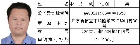 为切实维护申请执行人的合法权益,推进社会信用体系建设,维护司法权威,敦促被执行人自觉履行生效法律文书确定的义务,嘉禾县人民法院根据《最高人民法院关于公布失信被执行人名单信息的若干规定》的规定,现向社会公布本院二〇二四年第四期失信被执行人、限制高消费人员名单,请社会各界予以监督。