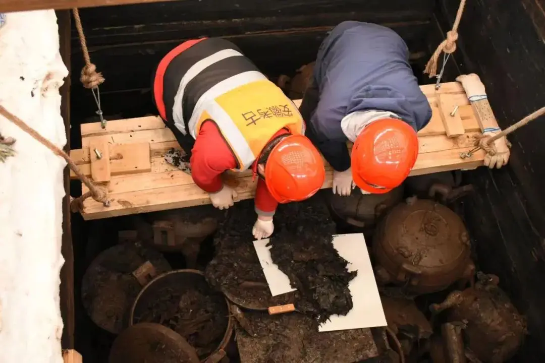 考古工作人员现场提取脆弱文物