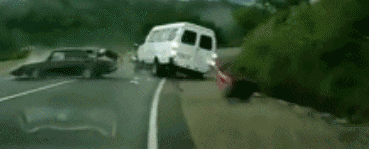 ▲ 车辆转弯处,两车相撞,黑色小轿车乘客被甩出车外。