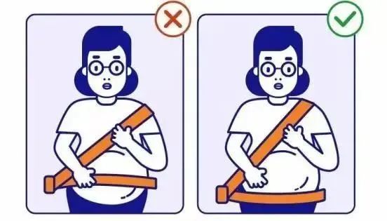 孕妇系安全带时,要让安全带腰带穿过胯骨,位置尽量要低,绝对不要把腰带直接搭在肚子上方,那样会对胎儿造成压迫。
